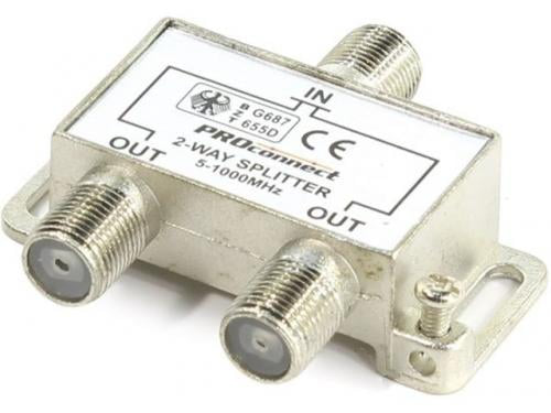 Антенный разветвитель незаменим в любой системе эфирного телевидения, а также в бытовых условиях, когда необходимо подключить к одной антенне несколько телеприемников. Делитель ТВ на 2 выхода под F-разъем предназначен для деления телевизионного сигнала, идущего от антенны к оборудованию, равномерно на число выходов. Данный ТВ краб на 2 выхода под F разъём PROCONNECT имеет два выхода, т. е. сигнал, проходящий через сплиттер, делится пополам. Кабель подключается к этому делителю с помощью F-разъем
