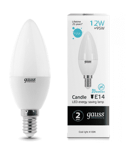 Лампа светодиодная (LED) «свеча» d37мм E14 240° 12Вт 180-240В матовая нейтральная холодно-белая 4100К Gauss Класс энергоэффективностиA+