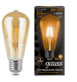Лампа LED Filament ST64 E27 6W Golden 2400К 1/10/40 Угол светового пучка360 °