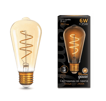Gauss Лампа LED Filament ST64 Flexible E27 6W Golden 2400К 1/10/40 Мощность лампы6 Вт