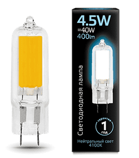 Лампа светодиодная (LED) капсульная d16мм G4 320° 4.5Вт 220-240В прозрачная нейтральная холодно-белая 4100К Gauss Диммируемый (-ая)Нет
