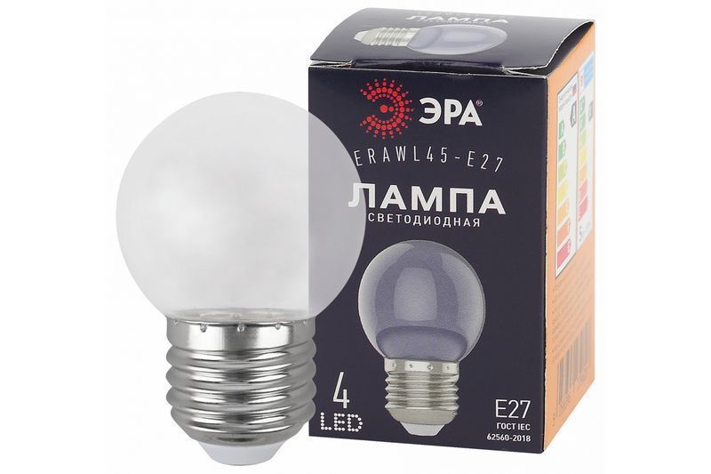 Лампа светодиодная ERAWL45-E27 P45 1Вт шар прозрачный E27 4SMD предназначена для использования в светильниках типа белт-лайт. Эта энергоэффективная лампа обеспечивает яркое и равномерное освещение благодаря 4 светодиодам. Удобный цоколь E27 позволяет легко установить лампу в различные светильники. Идеально подходит для использования в домашнем интерьере, офисах или коммерческих помещениях.