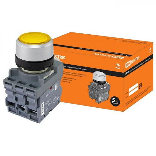 Кнопка TDM MP1-21Y(LED) (в сборе; диаметр 22 мм; 24В; 1з+1р; желтая) SQ0747-0019 - это электрическая кнопка, предназначенная для использования в различных устройствах и системах. Она имеет диаметр 22 мм, работает от напряжения 24 В, оснащена светодиодом (LED) желтого цвета для индикации состояния. Кнопка имеет один разомкнутый контакт (1з) и один разомкнутый контакт с обратной связью (1р). Сборка кнопки обеспечивает удобство использования и надежность работы.