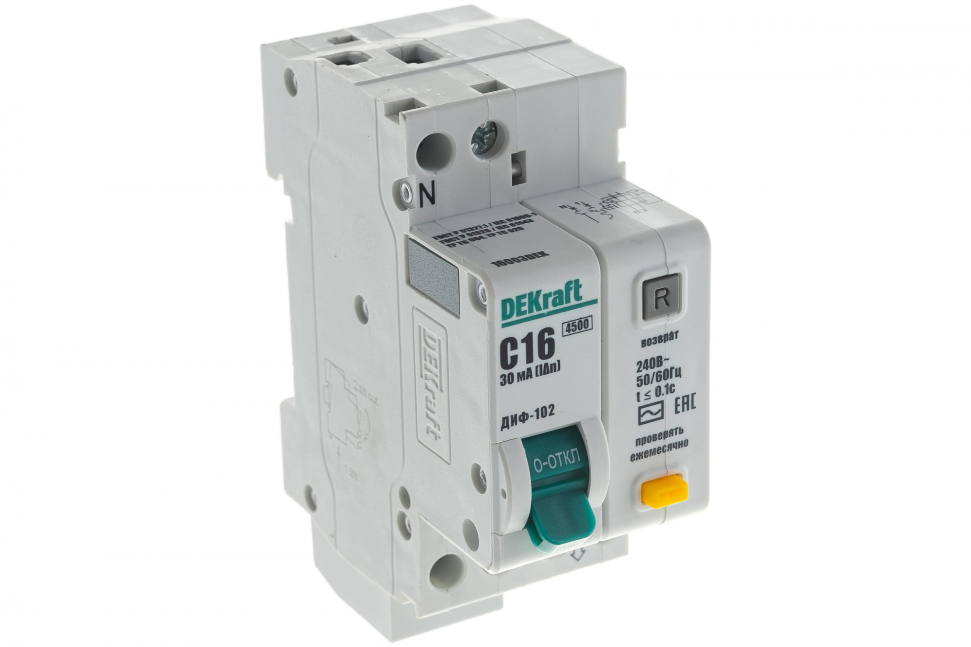 В нашем магазине «Главэлектрика» в Нижнем Новгороде, вы можете приобрести товар: «Диф. автомат 2П 16А 30мА DEKrАft ДИФ-102 хар-кА С тип АC 4,5кА 1П+N» с доставкой по г. Нижний Новгород.