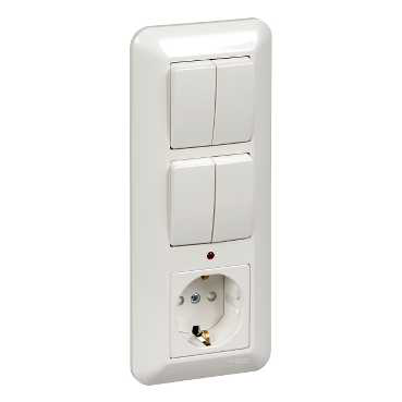 Блок комбинированный Schneider Electric ПРИМА (скрытой установки, белый) предназначен для сетей до 250 В, состоит из розетки на 16 А со шторками и с заземлением и двух двухклавишных выключателей, оба на 6 А.- Заземляющий контакт обеспечивает дополнительную защиту от удара электрическим током. При наличии заземления электрический потенциал уходит в землю, защищая человека.