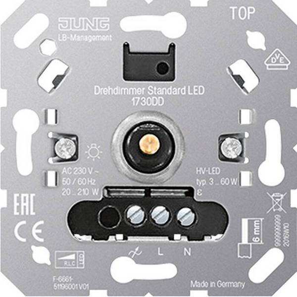 Светорегулятор Jung Jung 210 Вт - это надежное и удобное устройство для регулирования яркости освещения в помещении. Механизмы светорегулятора обеспечивают высокую эффективность работы до 210 Вт, что позволяет легко настроить освещение под любые потребности. Скрытый монтаж обеспечивает эстетичный внешний вид, не нарушая общий дизайн интерьера. Модель 1730DD отличается надежностью и долгим сроком службы, что делает ее идеальным выбором для дома или офиса.