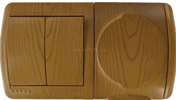 Lezard NATA выключатель и розетка с/з, с крышкой, ольха, горизонтальный блок 710-0700-170 - это надежное и стильное решение для обеспечения электрической безопасности и удобства использования в вашем доме или офисе.