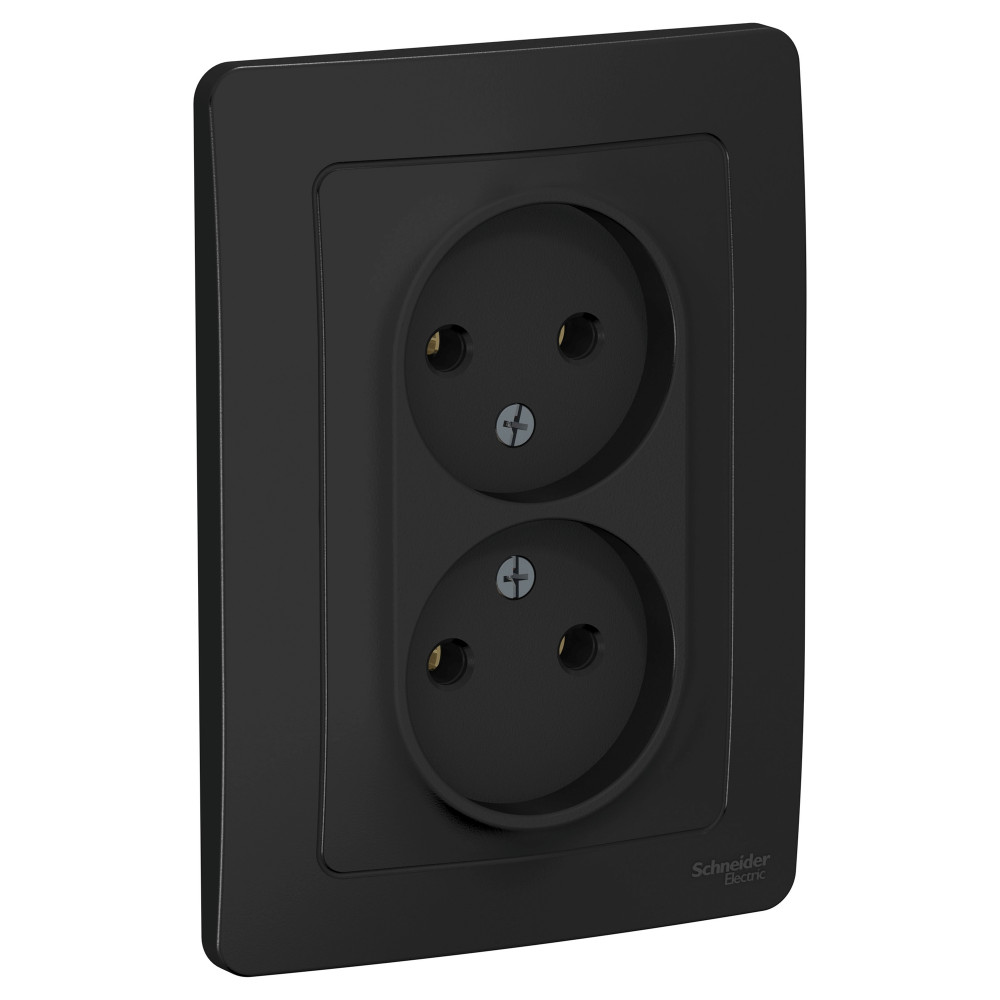 Розетка Systeme Electric (ранее Schneider Electric) BLANCA (антрацит, скрытой установки) двухместная, без заземления и шторок предназначена для сетей до 250В, на ток до 16А. Двухместная розетка позволяет подключить два устройства в одном месте. Она изготовлена из ABS-пластика, проста в установке и удобна в применении.