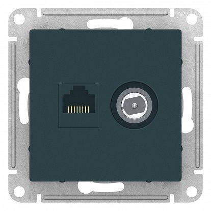 Розетка TV+RJ45 Cat.5 Schneider Electric ATLASDESIGN – это стильное и функциональное устройство, предназначенное для установки в помещениях. Она сочетает в себе два разъема: TV и RJ45 Cat.5, что позволяет подключить как телевизионный кабель, так и сетевой кабель для интернета.Изумрудный цвет розетки придает ей элегантный и современный вид, который отлично впишется в любой интерьер. Благодаря использованию высококачественных материалов и тщательной сборке, розетка от Schneider Electric обеспечивает надежное и безопасное подключение устройств.