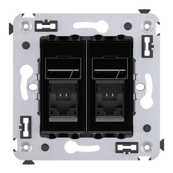 Компьютерная розетка RJ-45 в стену кат.5e двойная DKC Avanti предназначена для подключения сетевых устройств к локальной вычислительной сети. Она обеспечивает стабильное и надежное соединение благодаря высокому качеству материалов и профессиональной сборке. Розетка имеет два порта, что позволяет подключить несколько устройств одновременно. Дизайн в черном цвете с квадратной формой прекрасно впишется в интерьер офиса или дома, придавая ему современный и стильный вид.