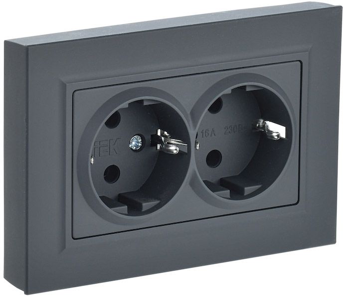 В нашем магазине «Главэлектрика» в Нижнем Новгороде, вы можете приобрести товар: «BRITE Розетка 2-местная с заземлением с защитными шторками 16А в сборе РСш12-3-БрГ графит IEK» с доставкой по г. Нижний Новгород.