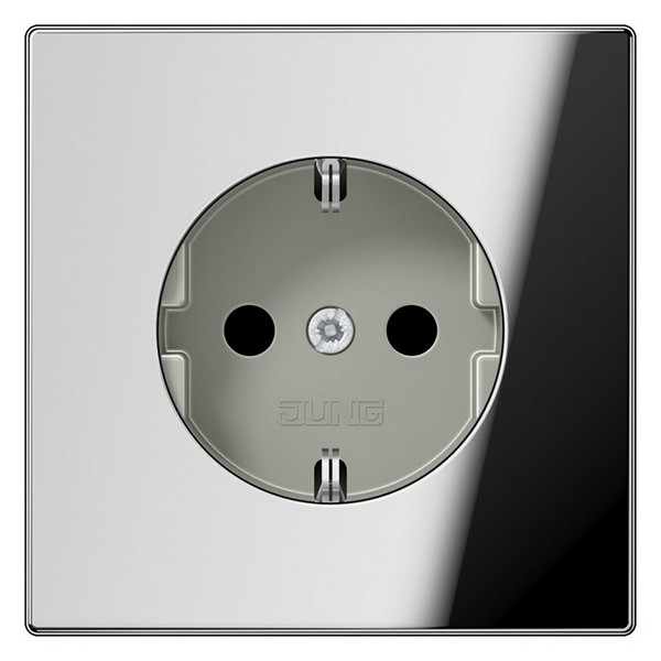 Розетка Jung LS METAL - это стильное и функциональное электрическое устройство для скрытого монтажа с заземлением. Она выполнена в хромированном цвете, что придает ей элегантный и современный вид. Розетка оснащена шторками, которые защищают от попадания пыли и влаги, обеспечивая безопасность использования. Изделие отличается высоким качеством исполнения и надежностью, что делает его идеальным выбором для любого интерьера.