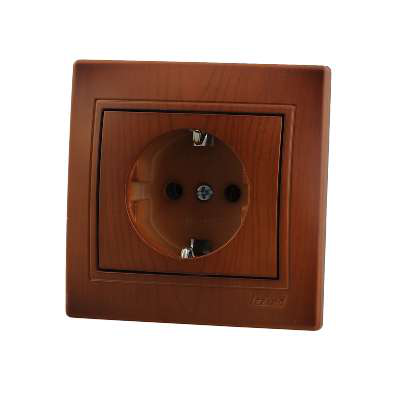 Розетка з/к (керамика). Изделия с расцветкой «под дерево» изготовлены из покрашенного «под фактуру» пластика, а не оклеены цветной пленкой. Безопасные для рук крепежные выступы с пружиной и возвратом в исходное положение. Серебряные контакты, выполнены по стандарту из сплава. Опорна плата с маркировкой, на все изделия нанесены схемы электрического соединения. Надежные соединения с помощью шайб с насечкой. Простой монтаж и демонтаж. Нержавеющий металлический каркас. Защита пальцев. Напряжение 25