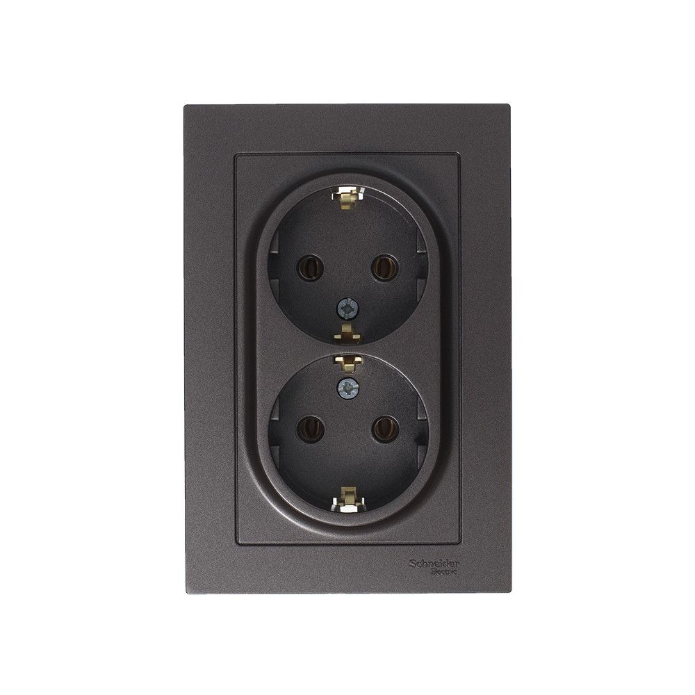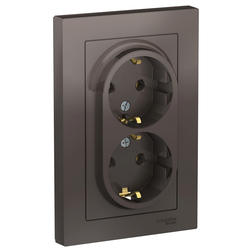 Розетка двойная в сборе Systeme Electric (ранее Schneider Electric) серии AtlasDesign в цвете мокко с заземлением, без шторок подходит для сетей 250 В, на ток 16 А. Заземляющий контакт обеспечивает дополнительную защиту от удара электрическим током. Лицевые детали из качественного ABS-пластика, устойчивого к царапинам и УФ-излучению. Двойная розетка позволяет подключить два устройства в одном месте. Изделие поставляется в комплекте с рамкой того же цвета.