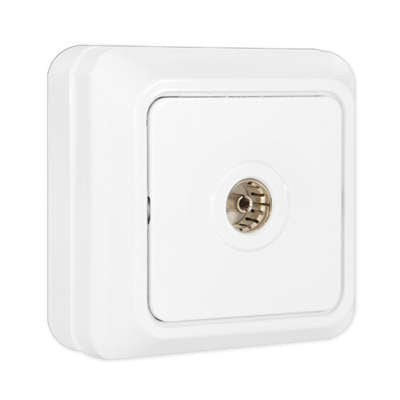Электроустановочные изделия серии Олимп. Открытая установка. Корпус изделия изготовлен из негорючего пластика АВС. Срок службы не менее 5000 циклов