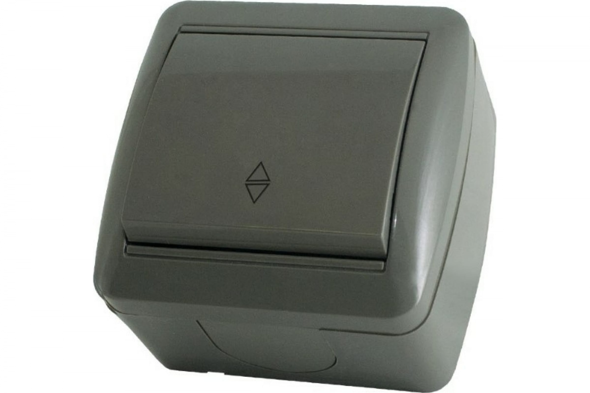 TDM Селигер Серый Выключатель на 2 направления 1-клавишный открытая установка IP44 10А SQ1818-0111 - надежный и безопасный выбор для управления электрическими цепями в различных средах.