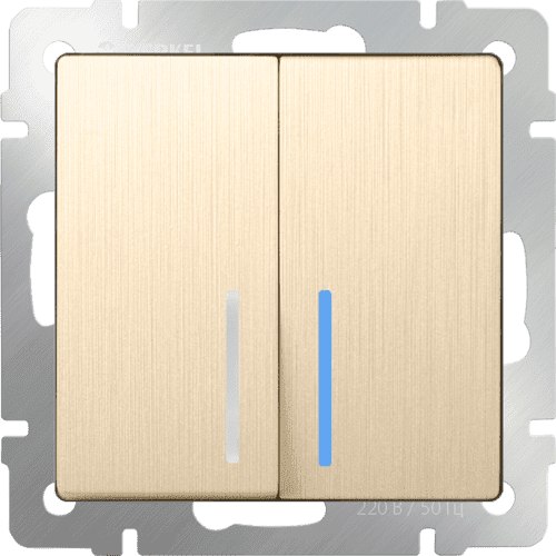 Выключатель двухклавишный проходной (из 2-х мест) с подсветкой 10 AX - 250 В Werkel, шампань рифленый a035617 Способ крепления проводов: безвинтовой зажимСтепень защиты (IP): IP20