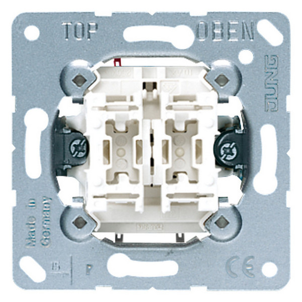 Механизм выключателя 2-клавишного Jung коллекции JUNG, скрытый монтаж, 505U - это качественный и стильный механизм для установки двух клавишных выключателей. Он предназначен для скрытого монтажа, что позволяет создать эстетичный и современный интерьер. Механизм выполнен из прочных и надежных материалов, обеспечивая долгий срок службы. Он легко устанавливается и подключается к электрической сети. Этот механизм отлично подойдет для использования в жилых помещениях, офисах или других коммерческих объектах.