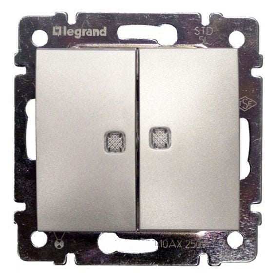 Двухклавишный выключатель Legrand VALENA CLASSIC представляет собой стильное и функциональное устройство для управления освещением в помещении. Изготовлен из прочного алюминиевого материала, он отличается надежностью и долговечностью.Выключатель оснащен подсветкой, что делает его удобным в использовании даже в темное время суток. Скрытый монтаж обеспечивает эстетичный внешний вид и легкость установки.