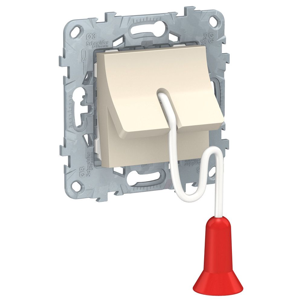 Выключатель одноклавишный Schneider Electric UNICA NEW (бежевый) без подсветки со шнуром длиной 1 метр без фиксации предназначен для сетей до 250 В на ток до 10 А.- 1 нормально открытый контакт.