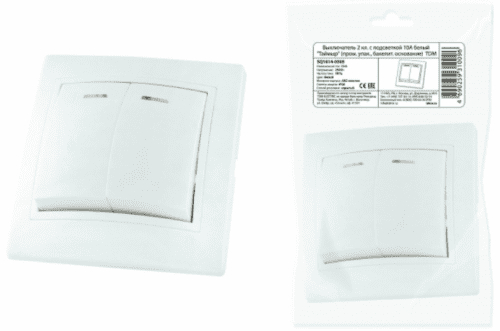 TDM Таймыр Белый Выключатель 2-клавишный с подсветкой 10А (пром. упак, бакелит. основание) SQ1814-0505 - это высококачественный электрический выключатель, специально разработанный для использования в различных помещениях.Выключатель имеет две клавиши, которые позволяют управлять двумя различными электрическими устройствами или группами освещения. Клавиши обладают подсветкой, что обеспечивает удобство и комфорт в использовании даже в условиях низкой освещенности.