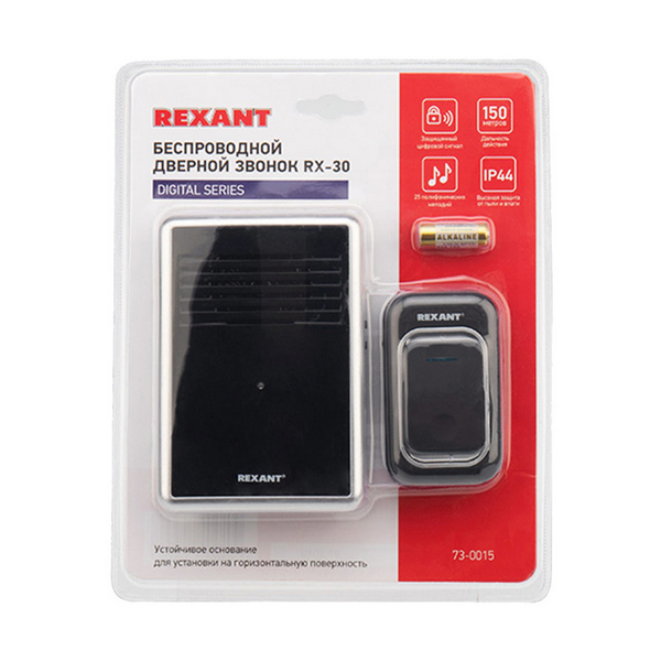 Все эти функции делают REXANT Звонок беспроводной c цифровым кодированием, с кнопкой IP44 и регулировкой громкости 25 мелодий RX-30 73-0015 идеальным выбором для тех, кто ценит комфорт, безопасность и инновационные решения в своем доме или офисе.