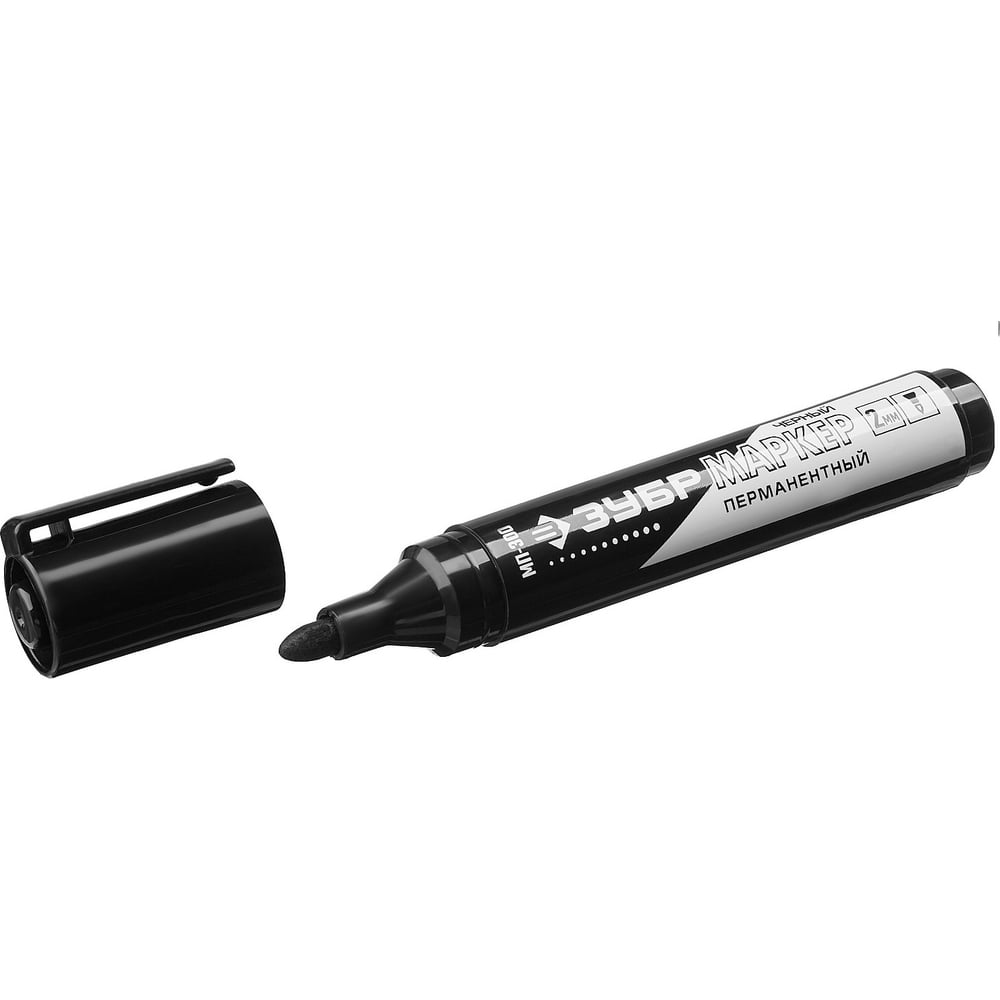 Перманентный маркер Зубр МП-300 черный, заостренный наконечник 06322-2 пишет на различных поверхностях - картон, пластик, стекло, бумага. Инструмент применяется в различных сферах. Толщина линии составляет 2-3 мм.