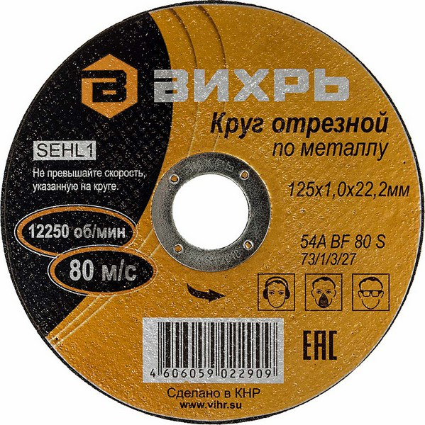 В нашем магазине «Главэлектрика» в Нижнем Новгороде, вы можете приобрести товар: «Круг отрезной по металлу 125х1.0х22мм Вихрь 73/1/3/27» с доставкой по г. Нижний Новгород.