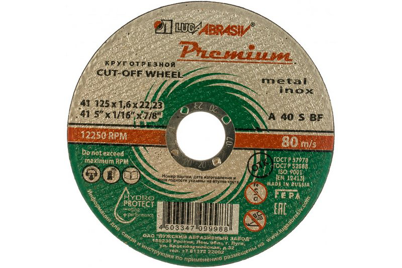 Круг отрезной по металлу+нерж., 125 х 1,6 х 22 мм, ПРЕМИУМ (Луга)// Россия - высококачественный отрезной круг, предназначенный для работы с металлом и нержавеющей сталью. Изготовлен в России компанией Луга, что гарантирует надежность и долговечность инструмента. Размеры круга - 125 мм диаметром, 1,6 мм толщина, 22 мм посадочное отверстие. Идеально подходит для профессионального использования в металлообработке, строительстве и ремонте.