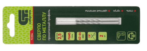 Сверло по металлу 2,5 мм, Р6М5, 2 шт // СИБРТЕХ 72204Набор сверл по металлу от производителя СИБРТЕХ предназначен для точного и чистого сверления отверстий в металлических поверхностях. Изготовлены из высококачественной быстрорежущей стали Р6М5, что обеспечивает долгий срок службы и отличное качество сверления. Диаметр сверла составляет 2,5 мм, что делает его универсальным инструментом для различных видов работ. В упаковке 2 штуки, что позволяет использовать их как запасные или для выполнения более крупных задач. Надежный и прочный инструмент для профессионального и домашнего использования.