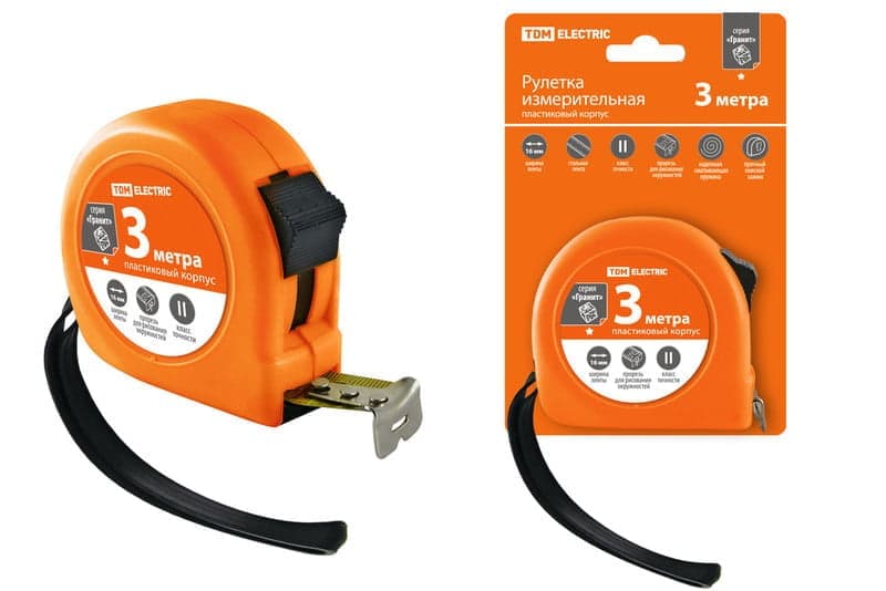 Этот инструмент применяется для измерения измерение длины предметов, расстояний, проведение разметочных работ. Незаменимый инструмент при строительных и отделочных работах. Для рулеток серии ''Гранит'' существует возможность чертить круглые отверстия при помощи прорези в крючке.