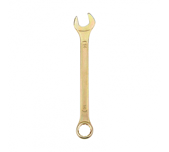 Ключ комбинированный REXANT 14 мм, желтый цинк - это удобный инструмент для затягивания и откручивания гаек и болтов диаметром 14 мм. Он выполнен из прочного металла с покрытием желтым цинком, что обеспечивает защиту от коррозии и увеличивает срок службы инструмента. Ключ имеет комбинированную конструкцию, позволяющую использовать его как гаечный, так и головной ключ. Этот ключ отлично подойдет как для профессионального использования, так и для ремонта и обслуживания дома.