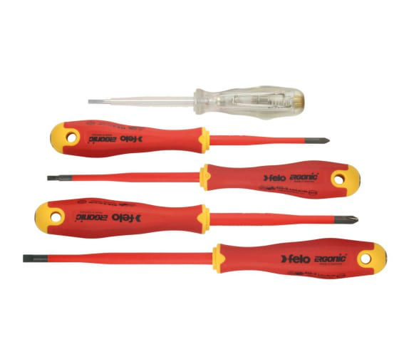 Набор отверток диэлектрических SL/PH E-Slim Ergonic с тестером сети (уп.5шт) Felo 41385298 - это набор высококачественных отверток с изолированными рукоятками, предназначенных для работы с электрическими цепями под напряжением. Каждая отвертка оснащена удобной эргономичной рукояткой E-Slim Ergonic, которая обеспечивает комфортное и надежное сцепление во время работы. В комплекте также имеется тестер сети, который позволяет быстро и легко проверить наличие электрического напряжения в цепи. Набор состоит из 5 отверток различных размеров и типов, что делает его универсальным и удобным для использования в различных ситуациях. Продукция от немецкого производителя Felo отличается высоким качеством и надежностью, что делает этот набор отличным выбором для профессиональных электриков и любителей.