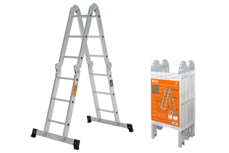 Лестница-трансформер изготовлена из алюминиевого сплава, что обеспечивает ей прочность, надежность и долгий срок службы. Благодаря устойчивой конструкции и антискользящим накладкам на ступенях, использование лестницы безопасно и комфортно.