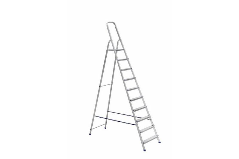 Стремянка оснащена 10 ступенями, что обеспечивает устойчивость и удобство при подъеме. Прочные ножки с антискользящими наконечниками обеспечивают надежное сцепление с поверхностью.