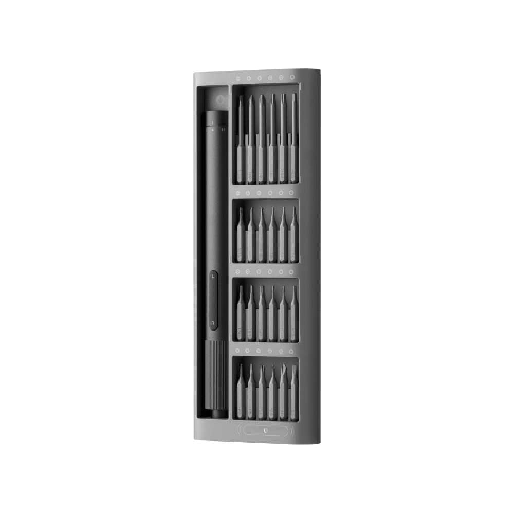 Аккумуляторная отвертка Xiaomi Electric Precision Screwdriver BHR5474GL позволяет ремонтировать различные электронные устройства, бытовую технику и изделия для дома. Идеально для повседневного применения Разбирайте и ремонтируйте различные электронные устройства, бытовую технику и изделия для дома с помощью высокоточных и прочных бит. Всего в набор входит 24 биты, обновленные под современные изделия. Надежность и удобство Высококачественные точные биты из стали S2 обеспечивают прочность и высокую твердость до 60 HRC. Двойное покрытие обеспечивает защиту от коррозии и плотный контакт с разными типами шлица во избежание повреждения винта. Трехгранная ручка из алюминиевого сплава удобно лежит в руке, что позволяет без труда использовать отвертку. Анодированная поверхность остается гладкой, но не скользит. Комфортная работа одной рукой благодаря специальному поворотному колпачку. Монолитный корпус из алюминиевого сплава обеспечивает удобный хват отвертки рукой. Корпус имеет скругленные края для удобного использования. Компактность Удобство переноски отвертки благодаря компактной конструкции. Тонкий и легкий корпус шириной менее 70 мм. Хранение Футляр для хранения с инновационным механизмом открытия в компактном дизайне и небольшим весом обеспечат быстрый и удобный доступ к инструментам одним касанием. Менять биты стало проще. Безопасный магнитный футляр позволяет легко доставать и возвращать на место биты.
