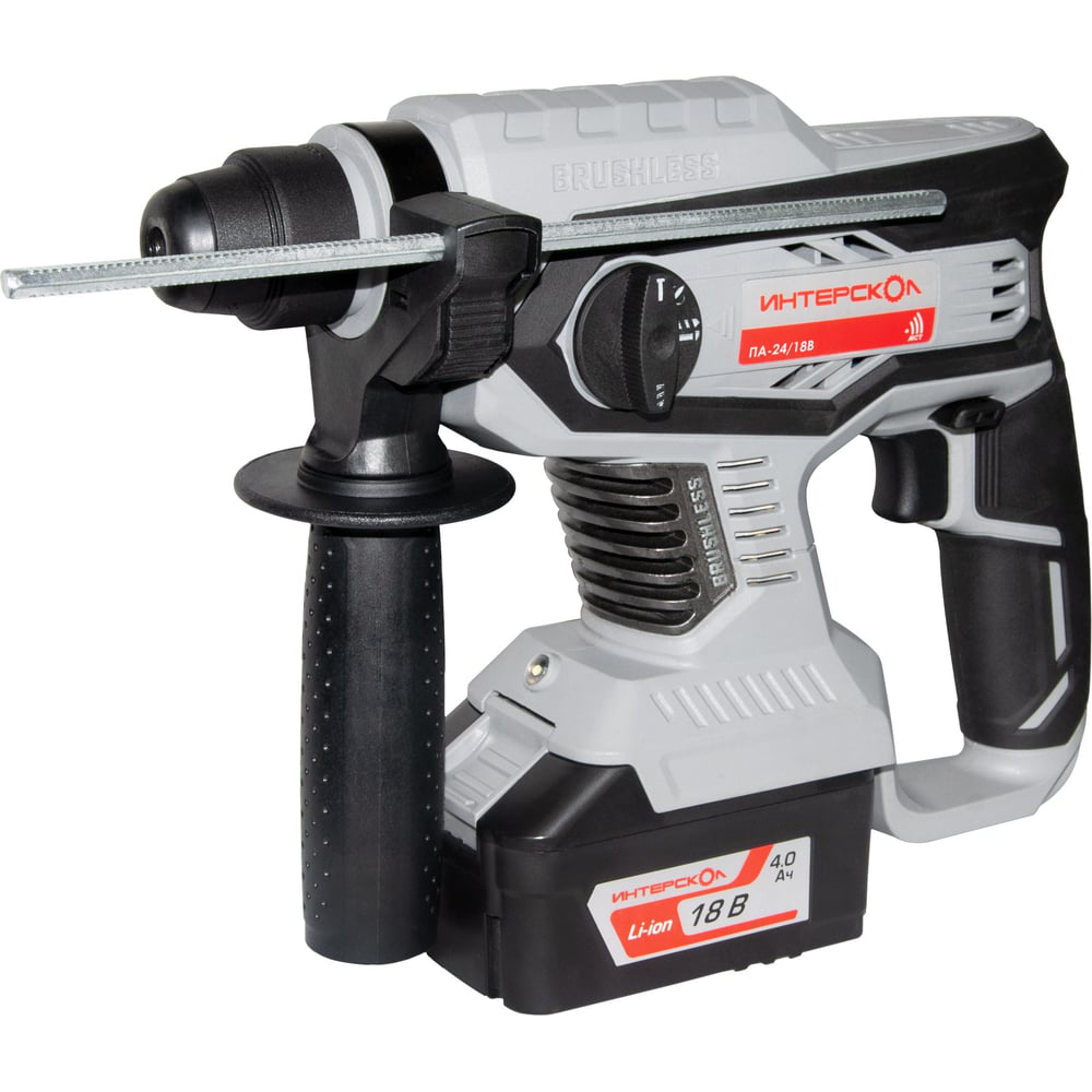 Аккумуляторный перфоратор Интерскол ПА-24/18В 579.4.1.70 используется при строительных работах в местах, где отсутствует источник электроэнергии. Бесщеточный двигатель отличается высокой энергоэффективностью, отличной производительностью, мощностью и надежностью. Реверс позволяет быстро менять направление вращения оснастки для легкого извлечения сверла.