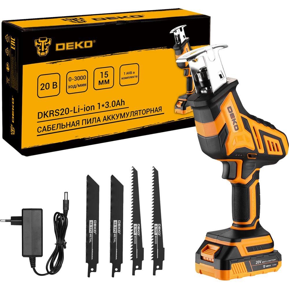 Сабельная пила аккумуляторнаяDKRS20-Li-ion 1*3.0Ah предназначена для распила древесины, металла и прочих строительных материалов. Обрезиненная рукоятка обеспечивает прочное удержание инструмента. Наличие кейса решает вопрос транспортировки и хранения инструмента.Главное преимущество этой сабельной пилы – многозадачность, ее можно использовать для резки дерева, пластика, металла, автомобильного лома и садовых растений, тем самым данная пила заменяет множество инструментов для дома и дачи. Технические характеристики: Напряжение аккумулятора: 20 В Емкость аккумулятора: 3000 мАч Число ходов: 0-3000 ход/мин Макс. глубина реза дерева: 200 мм Макс. глубина реза металла: 16 мм Макс. глубина реза пластика: 40 мм Тип аккумулятора: Makita-type Li-ion, аккумулятор в комплект не входит Инструмент совместим с аккумуляторами: - DEKO UNV 20 - Makita 18В Li-Ion тип BL-1830, BL-1840, BL-1850, BL-1860 - С аккумуляторами от щеточного инструмента DEKO, произведённый не ранее 2024 года