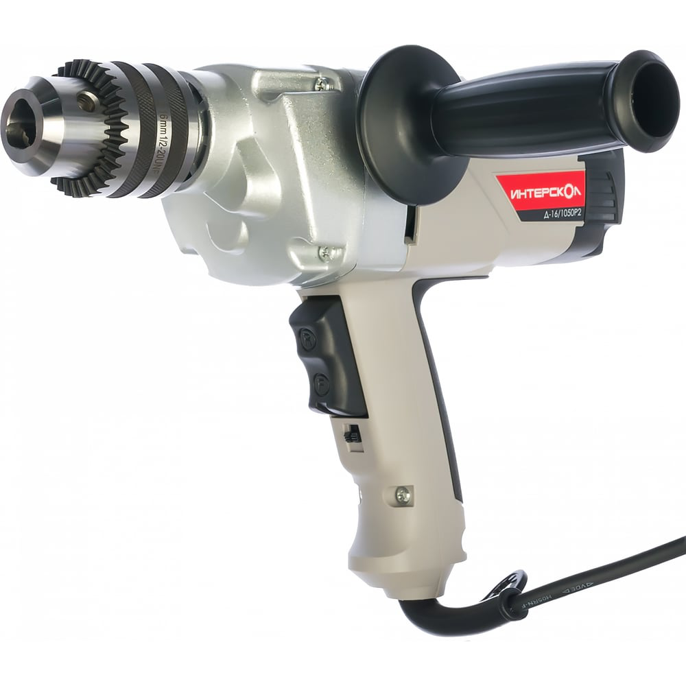 Дрель Интерскол Д-16/1050Р2 369.1.0.00 оснащен мощным и надежным двигателем. Размер ключевого патрона составляет 16 мм, что позволяет работать с крупной оснасткой. Металлический корпус редуктора увеличивает срок эксплуатации инструмента. Две рукоятки спосособствуют комфортной работе пользователя.