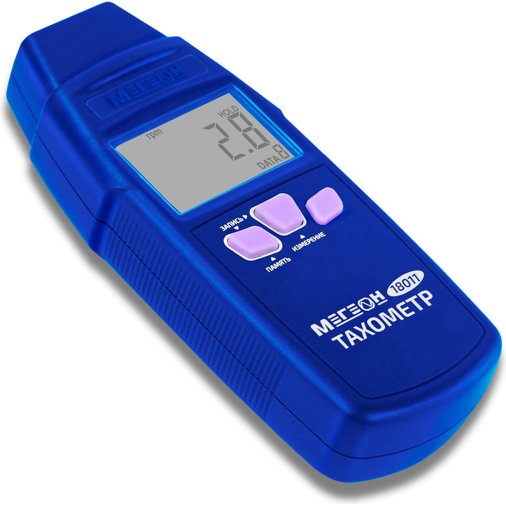 Портативный цифровой тахометр МЕГЕОН 18011 нашел широкое применение при проведении измерений скорости вращения различных объектов. Внесён в ГРСИ под номером 92810-24. Модель широко применяется среди специалистов, чья профессиональная деятельность так или иначе связана с измерением скорости вращения различных объектов и предметов. Прибор является высокоточным измерительным инструментом, который способен измерять скорость вращения в диапазоне оборотов от 30 до 99996 об/мин на расстоянии 5 ... 50 см. Прибор оснащен функцией определять минимальные, средние и максимальные показатели измерений, которые автоматически сохраняются в память ёмкостью 40 ячеек. Для простоты измерений предусмотрен лазерный целеуказатель, а благодаря эргономичной форме корпуса из прочного и качественного пластика достигается максимальное удобство эксплуатации.