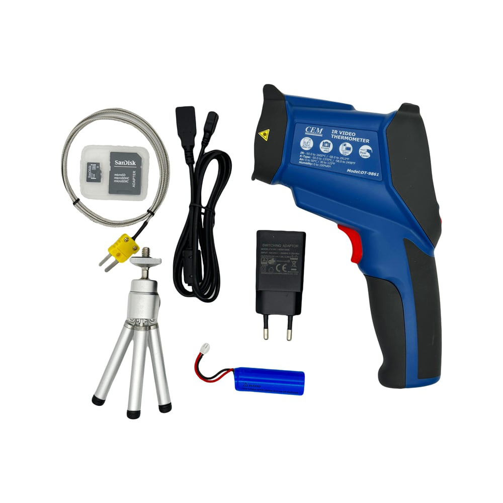 Высокотемпературный пирометр DT-9861 предназначен для бесконтактного измерения температуры поверхности, обеспечивая оптическое разрешение 50:1 в большом диапазоне температур. Особенность данной модели — наличие камеры (640 х 480) для создания фото (JPEG), видео (3GP) файлов с привязкой к ним измерений температур. Пирометр оснащен сдвоенным лазерным указателем для более точного целеуказания, входом для термопары К-типа и измерителем температуры и влажности воздуха.
