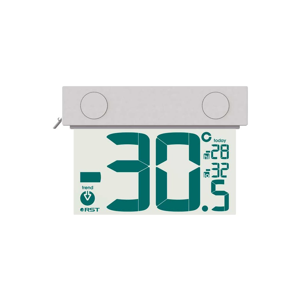 Цифровой оконный термометр RST RST01077 представляет собой модель с прозрачным дисплеем, предназначенную для измерения температуры воздуха на улице. На дисплее термометра отображается температура воздуха, тенденция ее изменения, максимальные и минимальные значения за текущие 24 часа. При соответствующих погодных условиях сигнализирует об опасности гололеда. Большие контрастные цифры значений температуры хорошо видны за счет солнечного света. Корпус термометра влагозащищен. Крепится на стекло снаружи помещения при помощи термоустойчивого скотча. Для того, чтобы избежать ложного нагрева, датчик температуры вынесен от корпуса на 30 мм. Термометр легко снимается с установочной панели для замены питания.