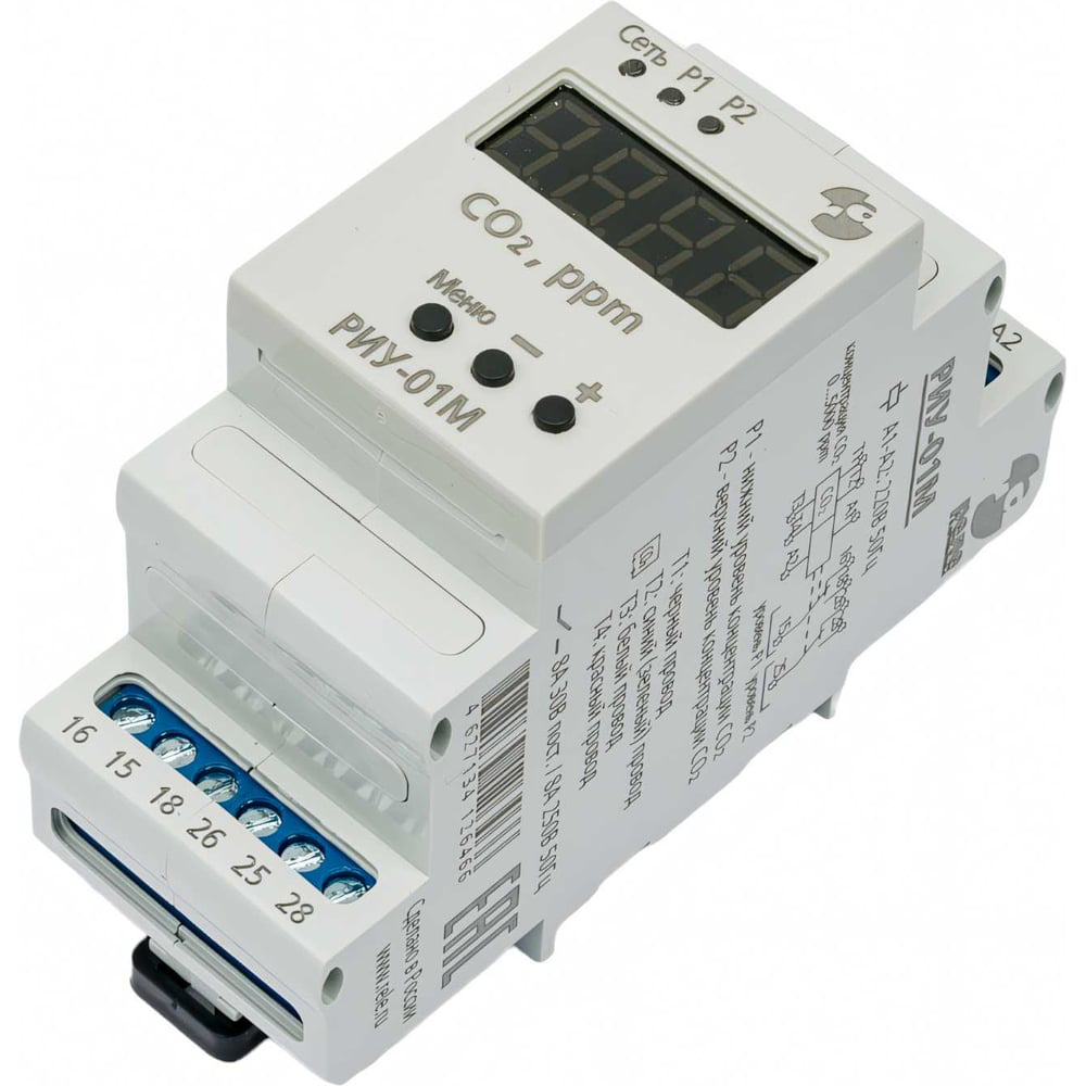 Реле-индикатор углекислого газа РИУ-01М предназначено для контроля содержания углекислого газа CO2 в воздухе. Оно информирует об уровне содержания углекислого газа и позволяет контролировать микроклимат в помещении.РИУ-01М имеет цифровую индикацию уровня CO2 и светодиодную— состояния исполнительных реле.Реле-индикатор углекислого газа может применяться:в сельском хозяйстве (птицефабрики, овощехранилища, тепличные хозяйства, грибные и животноводческие фермы)в промышленностив системах отопления, вентиляции и кондиционированияв жилых и общественных помещениях (детские сады, школы, больницы, торговые и офисные центры, складские помещения)Обращаем Ваше внимание — датчик ДУ (артикул A8223-34126473) с длиной кабеля 2,5 метра поставляется отдельно.