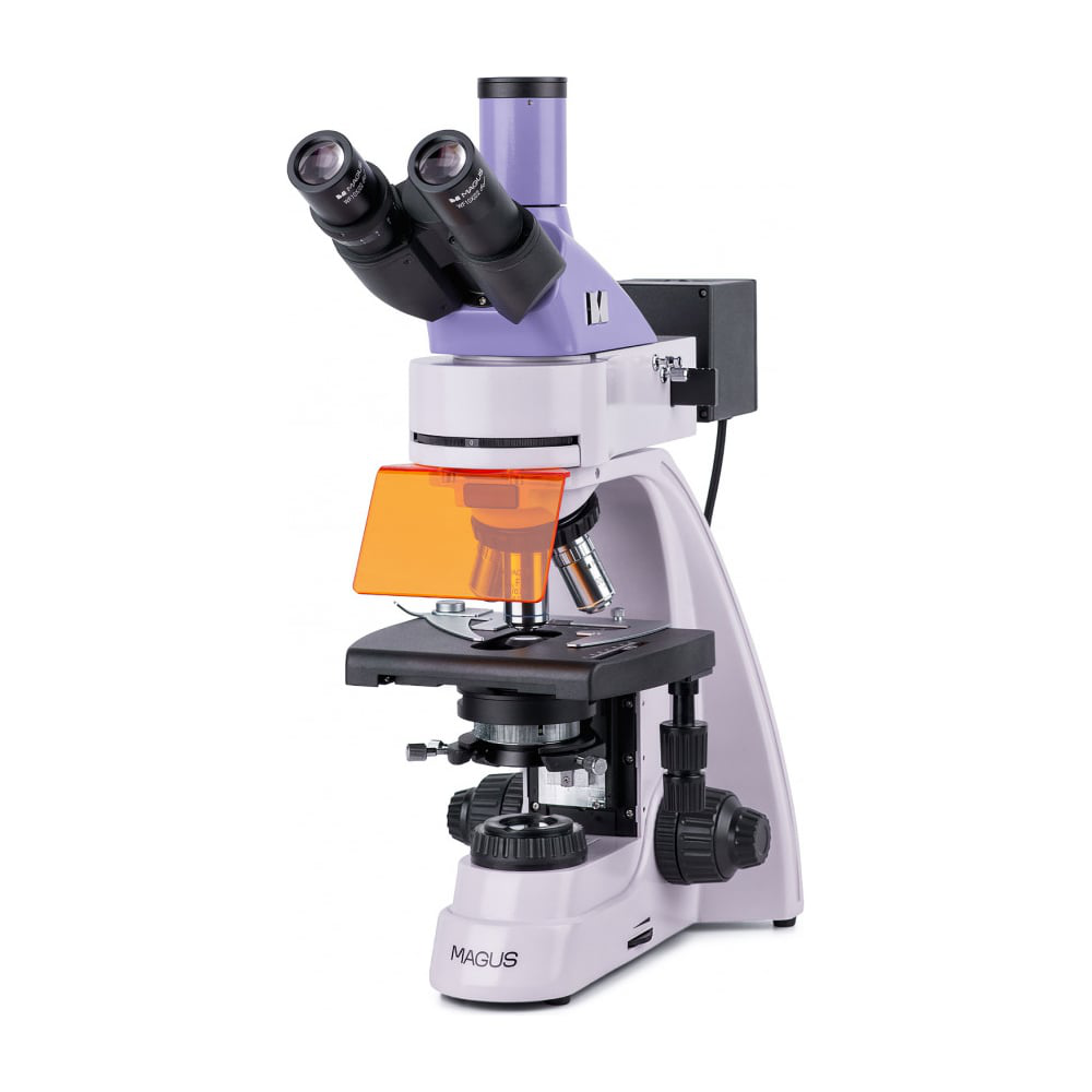 Микроскоп предназначен для исследования объектов при освещении отраженным светом по методу люминесценции и при освещении проходящим светом по методу светлого поля, а при дополнительной комплектации – по методам темного поля, простой поляризации и фазового контраста. Принцип метода люминесценции основан на способности некоторых веществ светиться под воздействием света определенной части спектра. Объекты облучают невидимым коротковолновым ультрафиолетовым светом или фиолетовым, синим и зеленым. Длина волны свечения больше длины волны возбуждающего света. Объект светится соответственно синим, голубым, зелено-желтым или красным светом. Некоторые объекты светятся самостоятельно, некоторые – после обработки флюорохромами. На люминесцентном микроскопе изучают возбудителей туберкулеза, хламидиоза, бешенства, герпеса и других болезней. Микроскоп используется для анализа ДНК и хромосомного анализа, исследования костного мозга и мазков крови, для криминалистической и фармакологической экспертизы, исследований ветеринарного контроля и санитарно-эпидемиологического надзора. Особенности: Исследование объектов, излучающих свечение под воздействием света возбуждения; Методы исследований: видимая люминесценция в отраженном свете, светлое поле в проходящем свете; Тринокулярная визуальная насадка с возможностью выбора высоты взора и с вертикальным тубусом для установки цифровой камеры; Осветитель отраженного света – 4 светодиода мощностью 5 Вт разных длин волн; Фильтры возбуждения видимой люминесценции: ультрафиолетовый (UV), фиолетовый (V), синий (B), зеленый (G); Осветитель проходящего света – экономичный светодиод 3 Вт со сроком службы до 50 000 часов; Освещение по Кёлеру в отраженном и проходящем свете; Предметный столик без выдвижной рейки для удобной работы; Широкая линейка дополнительных аксессуаров.