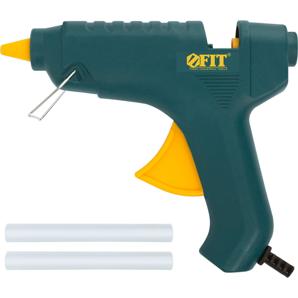 Клеевой пистолет FIT 14344 подойдет для бытового использования. Оснащен металлической скобой, которую можно использовать в качестве упора для установки в вертикальном положении. Удобство пользования. Длинный и широкий курок удобно нажимать при любом хвате рукоятки. Дополнительные характеристики Корпус: пластиковый Курок: АВС пластик, инструментальная сталь, ПВХ