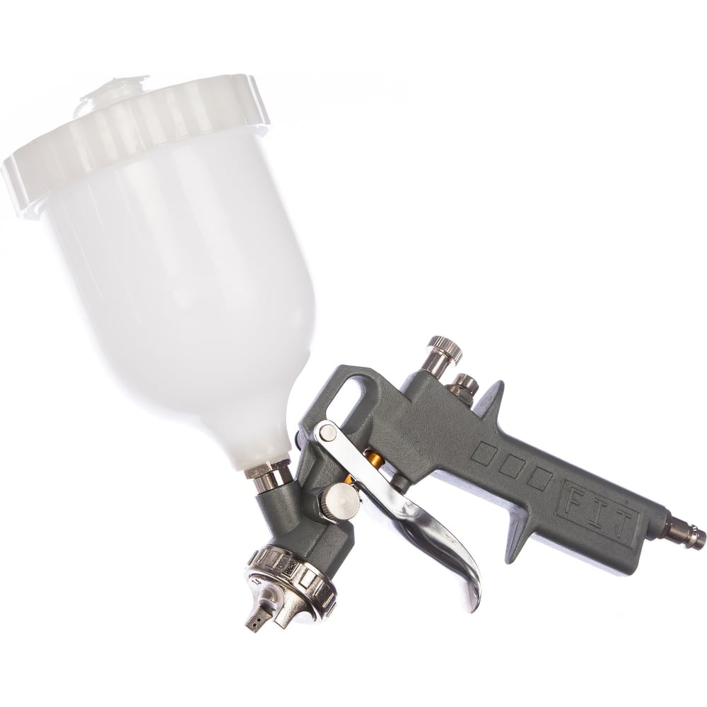Пневматический краскопульт FIT 81000 - инструмент для распыления водоэмульсионных красок, синтетических и полиуретановых эмалей, нитроэмалей. Оснащен верхним бачком, который выполнен из легкого пластика. Корпус инструмента изготовлен из алюминия, благодаря чему устойчив к механическим повреждениям. Предусмотрена возможность регулировки расхода краски, что позволяет добиться более эффективного результата.