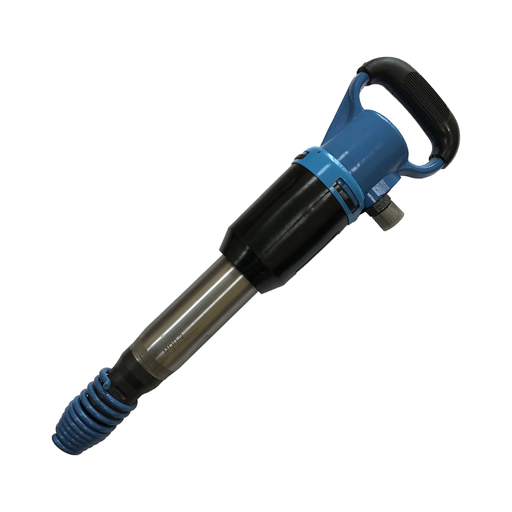 Отбойный пневматический молоток JSD МОП-2 используется для размельчения твердых материалов. Металлическая конструкция устойчива к механическим повреждениям. Края рукоятки тщательно сглажены, что обеспечивает комфортный хват. Хвостовик имеет специальную пружину, которая гасит вибрацию при работе.