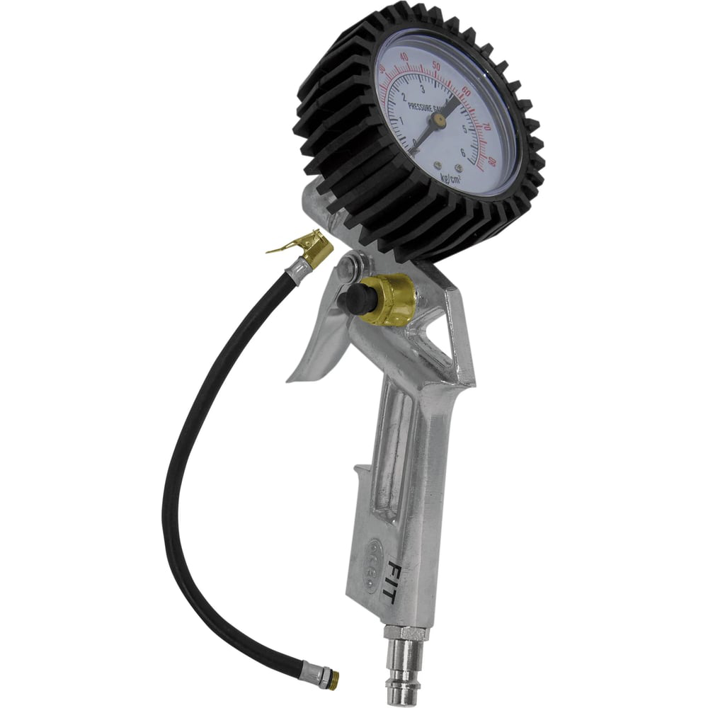 Пистолет с манометром FIT быстросъемное соединение 81048 используется для измерения давления при подаче воздуха и контроля давления. Корпус выполнен из алюминиевого сплава, что придает конструкции прочность, легкость и износоустойчивость. Для комфортного использования предусмотрена удобная рукоять. Измерительная шкала до 6 атмосфер, с шагом 0,1 атмосферы.
