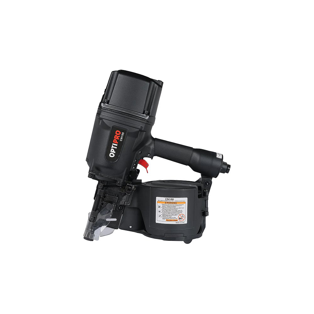 Пневмоинструмент OPTIPRO CN100PRO используется при деревянном домостроении, сборке настилов и обрешеток щек кабельных барабанов, изготовлении поддонов и паллет. Представляет собой надежный и безотказный инструмент с большим запасом мощности. Работает с барабанными гвоздями, собранными под углом 15°, длиной от 65 до 100 мм (диаметр 2.5-3.3 мм). Оптимальный вес и компактный размер облегчают эксплуатацию пистолета. Прорезиненная рукоять обеспечивает крепкий хват. Предусмотрена защита от случайного выстрела.