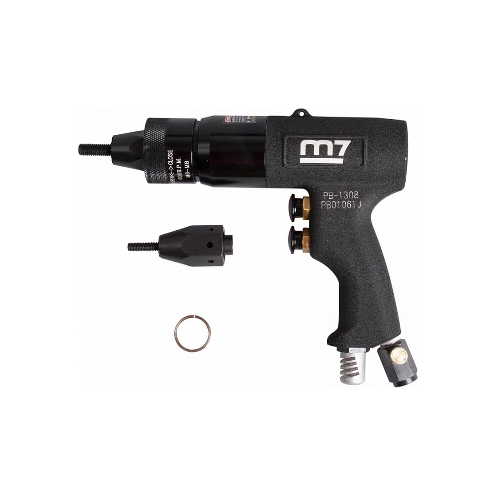 Пневматический заклепочник MIGHTY SEVEN PB-1308 работает с резьбовыми заклепками М6 - М8. Принцип работы на сжатом воздухе обеспечивает низкую пожаро- и взрывоопасность рабочего процесса, а также позволяет вести более длительную беспрерывную работу. Конструкция и детали изготовлены с высокой точностью, что увеличивает рабочий ресурс инструмента.